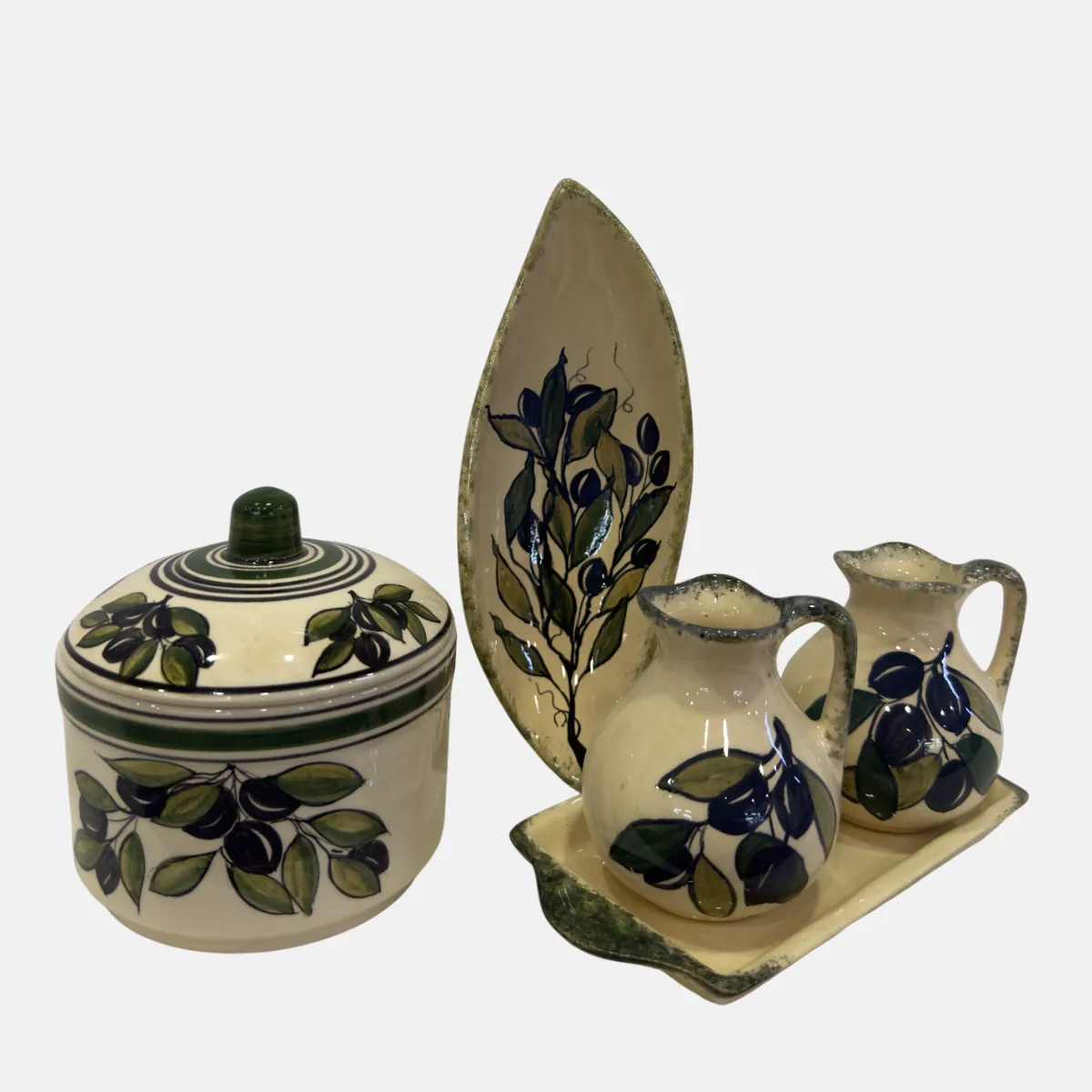 Ανακαλύψτε τη μοναδική μας συλλογή από χειροποίητα ελληνικά κεραμικά, εμπνευσμένα από τη μεσογειακή φύση και τη διαχρονική ομορφιά της ελιάς. Κάθε αντικείμενο είναι φτιαγμένο με μεράκι, ζωγραφισμένο στο χέρι με κομψά σχέδια ελιάς – το παγκόσμιο σύμβολο ειρήνης, σοφίας και γονιμότητας.